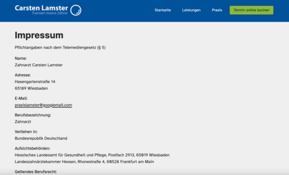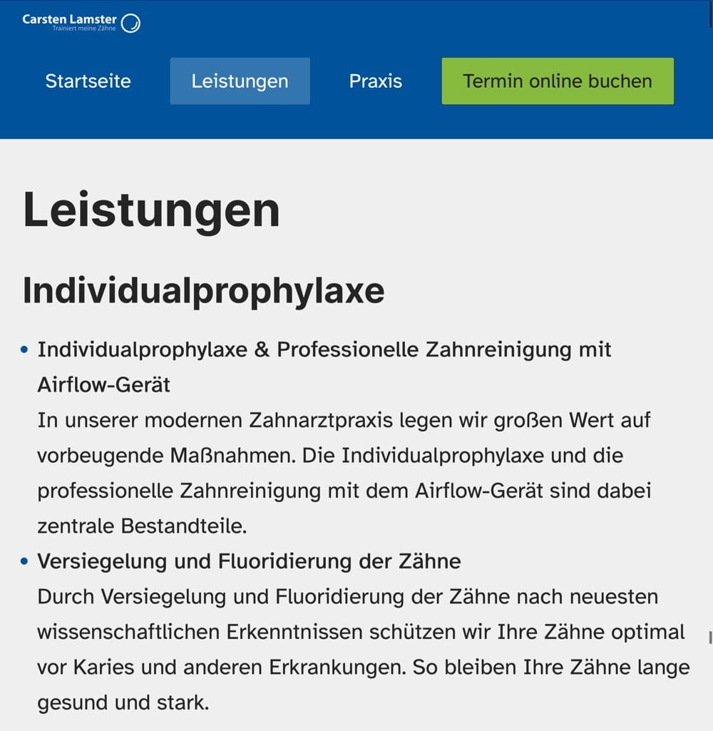 Beispiel: Zahnarztpraxis Carsten Lamster